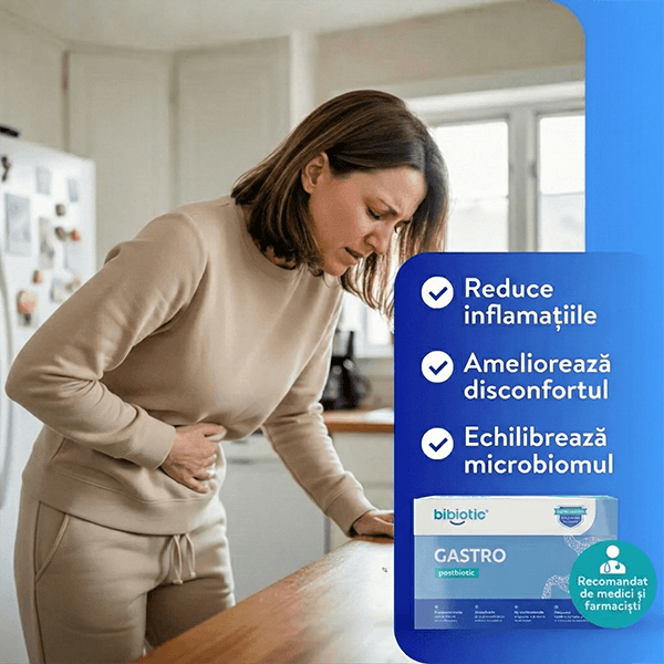 Când căutăm „probiotic pentru dureri de stomac”, nu căutăm o tulpină bacteriană specifică, ci o ameliorare directă și rapidă a simptomelor. Ne dorim să dispară balonarea, să se calmeze crampele, să se normalizeze digestia și să dispară acel disconfort constant care ne împiedică să trăim normal.
