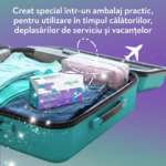 Pachetul include două cutii de Bibiotic® pentru copii și adulți – o soluție compactă pentru protecție împotriva virusurilor intestinale și disconfortului gastrointestinal în timpul călătoriilor.