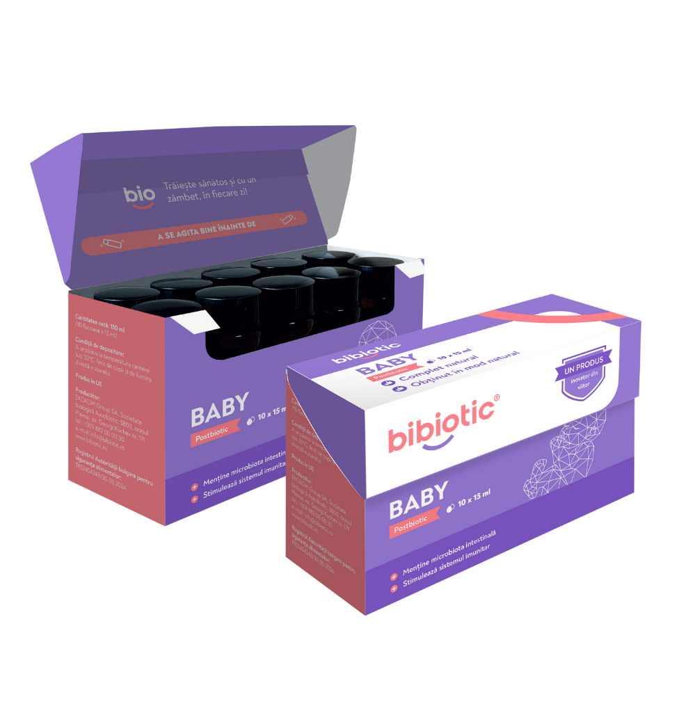 Bibiotic® Baby este un postbiotic special dezvoltat pentru cei mici, creat pentru a susține formarea unei microbiote intestinale sănătoase și pentru a asigura confort încă din primele luni.Produsul susține dezvoltarea naturală a bacteriilor benefice, reduce colicile, gazele și balonarea și favorizează dezvoltarea unui sistem imunitar puternic la bebeluș.