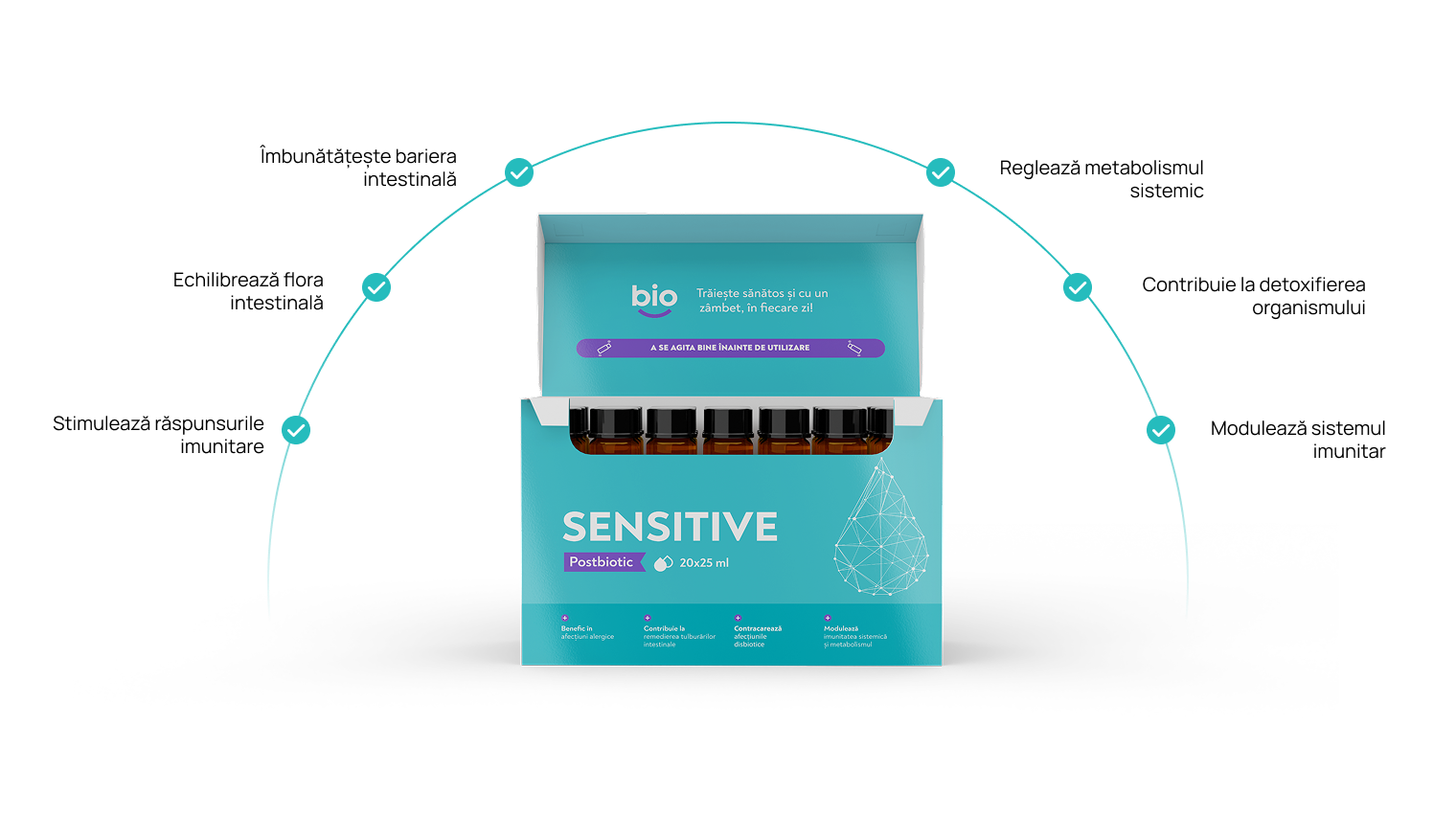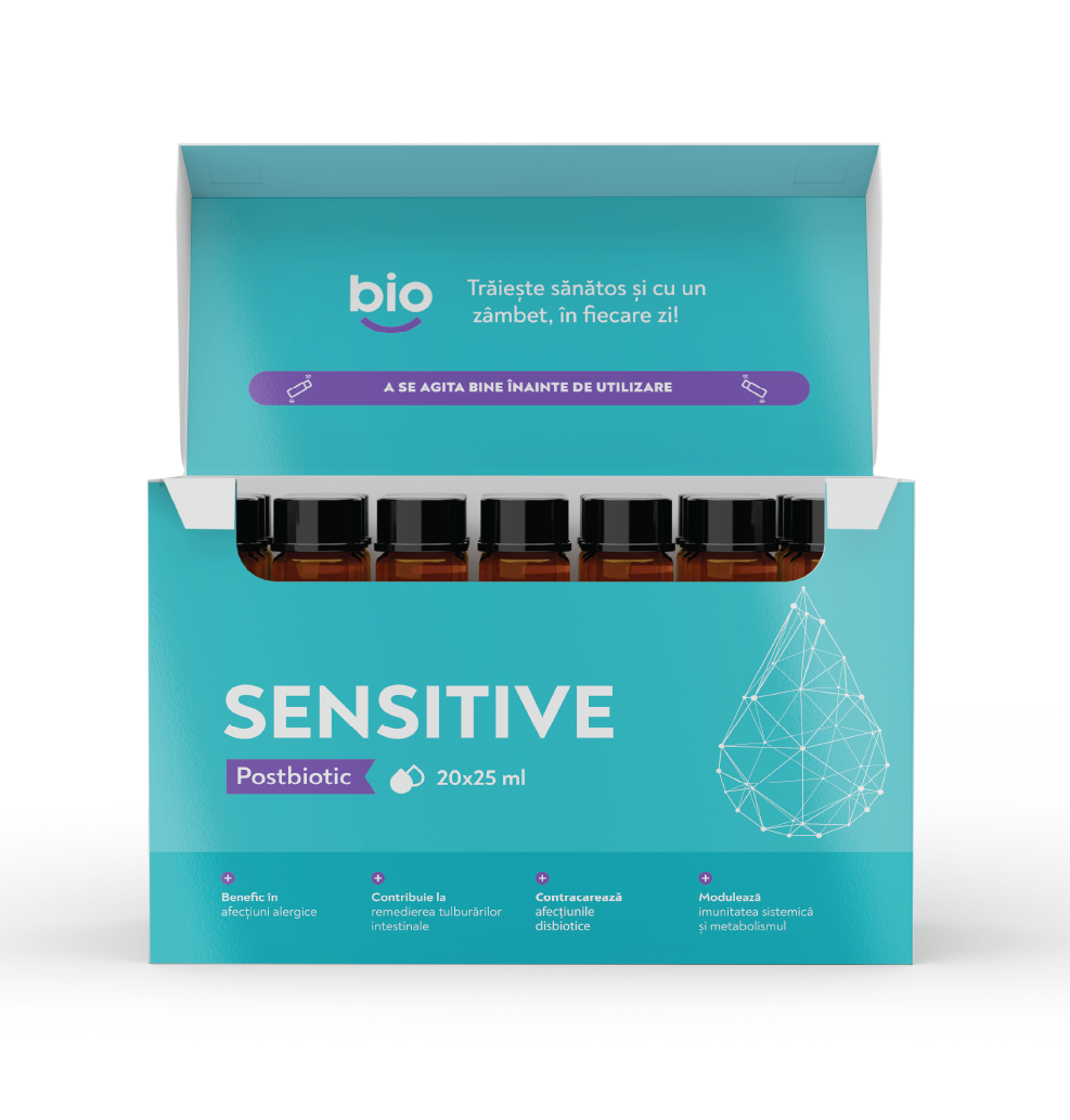 Prin îmbunătățirea barierei intestinale, Bibiotic® Sensitive contribuie la reducerea pătrunderii alergenilor în fluxul sanguin. Acesta îmbunătățește echilibrul bacteriilor noastre benefice, ajutând organismul să combată mai eficient alergenii și să reducă frecvența și intensitatea reacțiilor alergice. Microbiomul intestinal sănătos are un rol esențial în reglarea răspunsului imunitar, reducând probabilitatea apariției reacțiilor alergice. Bibiotic® Sensitive reglează producția de anticorpi și molecule inflamatorii, ceea ce este esențial pentru ameliorarea simptomelor alergiilor. Iar capacitatea sa de a reduce hipersensibilitatea sistemului imunitar, diminuând nivelurile de citokine inflamatorii, care va contribui la reacțiile corecte ale pielii legate de alergii.